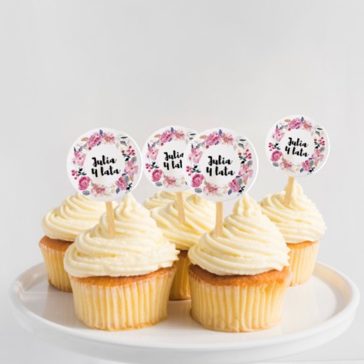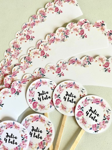 Kwiaty jakby malowane w odcieniach różu. Idealne osłonki na baby shower, roczek, wieczór panieński czy eleganckie przyjęcia dla małych księżniczek.