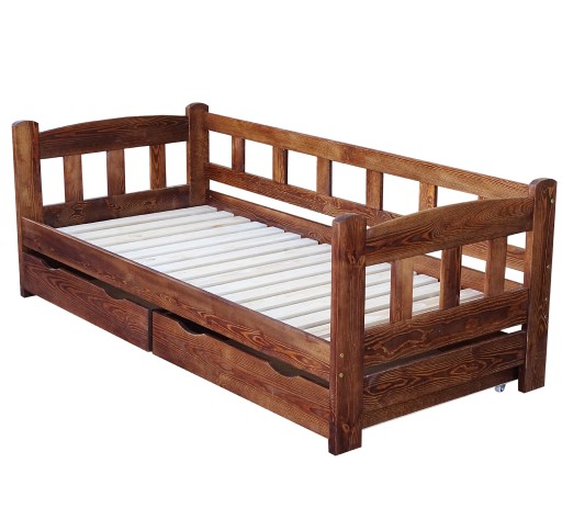 - podwójnie lakierowane deski lakierem bezbarwnym (na zdjęciu łóżko jest w kolorze ciemny orzech),