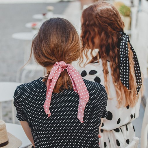 РОЗОВЫЙ шарф и резинка для волос в горошек