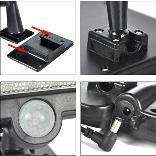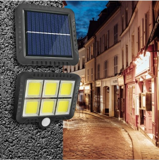 Całoroczna lampa solarna z 120 diodami LED, przeznaczona do montażu na ścianie.Zastosowanie na placach budowy, altanach, ogrodach, garażach, działkach, posesjach, parkingach.Posiada dwa tryby z czujnikiem ruchu lub czujnikiem zmierzchu. Stopień ochrony IP65.Lampa posiada strumień świetlny 1000 lumenów, czas jej pracy to ok. 8 godzin - ładowana jest za pomocą panela słonecznego. Czas ładowania to ok.6 h w dni słoneczne lub 1-2 dni pochmurne. Czujnik ruchu PIR ma zasięg do 5 m.