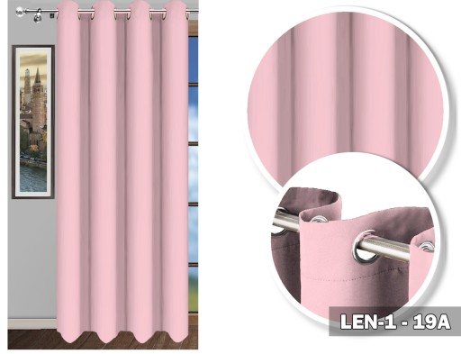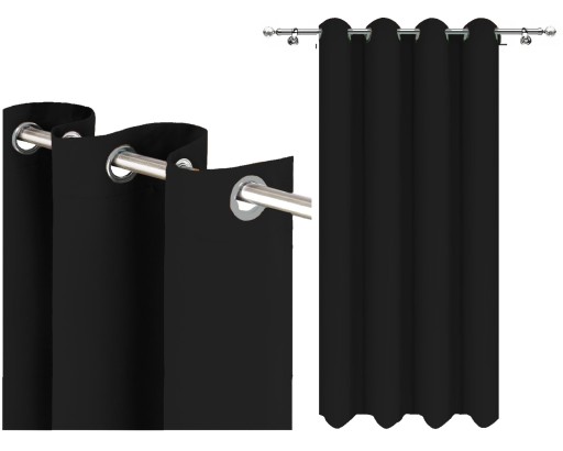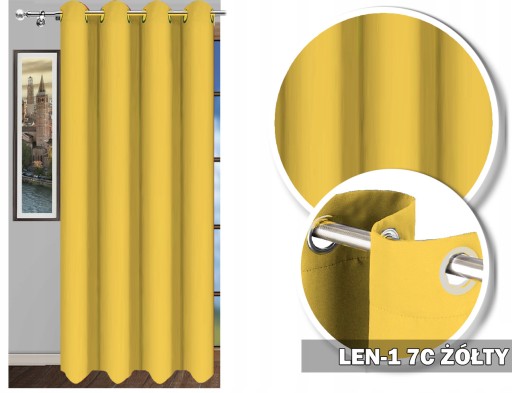 Zasłona u góry wykończona metalowymi przelotkami, brzegi obszyte.