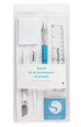 Zestaw narzędzi firmy Silhouette jest wyposażony w haczyk do foli samoprzylepnych oraz foli termicznych, narzędzie scraper do oczyszczania maty lub aplikacji folii na powierzchnie projektowe, szpatułkę do podnoszenia delikatnych wycinanych elementów z maty do cięcia, narzędzie Pick MeUp® do podnoszenia i układania cyrkonii oraz drobnych detali, oraz 15 cm przezroczystą linijkę i ściereczkę z mikrofibry do czyszczenia ekranu LCD urządzenia.