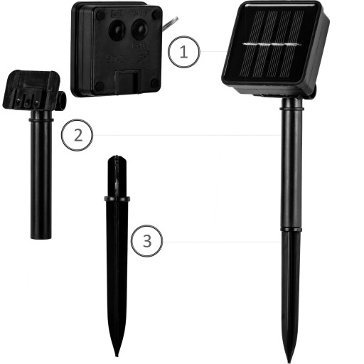 - do wyboru 2 programy świecenia zestawu za pomocą przycisku na tyle panela solarnego (ciągłe świecenie lub migotanie)