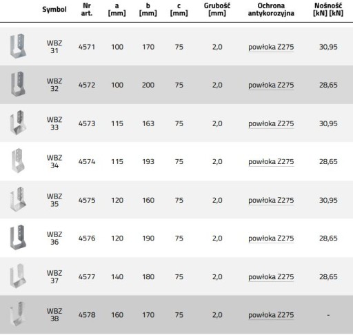 Materiał: DX51D + Z275 Grubość: 2,0mm Mocowanie: Gwoździe pierścieniowe ANCHOR .fi.4; Wkręty do drewna .fi.10; Śruby M10; Kotwy do betonu M10.