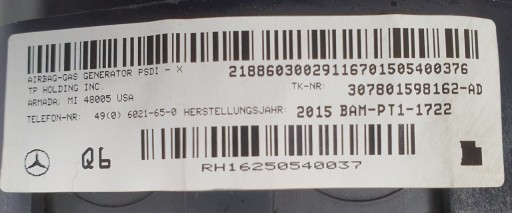 DESKA ROZDZIELCZA KONSOLA PODUSZKA AIRBAG KIEROWCY PASAŻERA A2126804300
