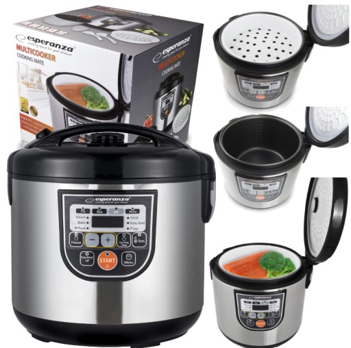 Nasz multicooker jest nieocenionym pomocnikiem w kuchni i dostarcza wielu korzyści. Posiada różne funkcje przygotowywania potraw, np.: smażenie, robienie frytek, gotowanie na parze czy pieczenie ciast i chleba. Oszczędza energie, zajmuje niewiele miejsca i znacznie skraca czas spędzony przy gotowaniu. Dzięki prostemu i intuicyjnemu wyświetlaczowi LCD można łatwo skonfigurować funkcje gotowania i dostosować ich czas do swoich potrzeb. Z naszym multicookerem przygotujesz wszystkie swoje ulubione potrawy szybciej i zdrowiej! Smacznego!