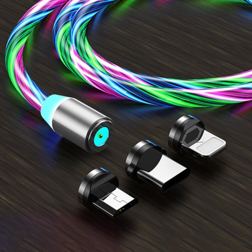 ZESTAW: MAGNETYCZNY KABEL USB LED + 3 KOŃCÓWKI