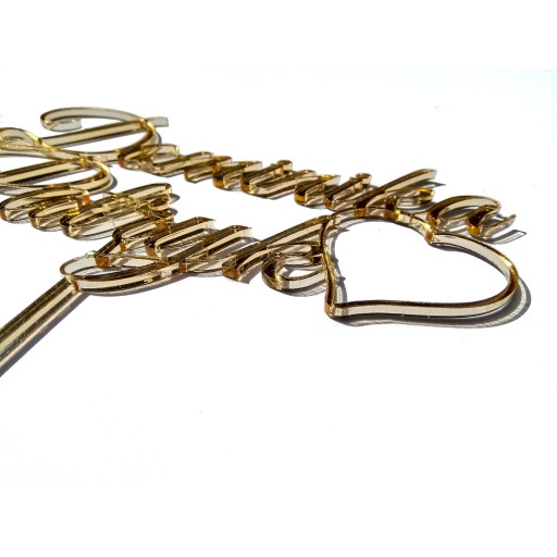 Topper na tort wykonany z lustrzanej płyty plexi 2/3mm, (bez plastra brzozy widocznego na niektórych zdjęciach).