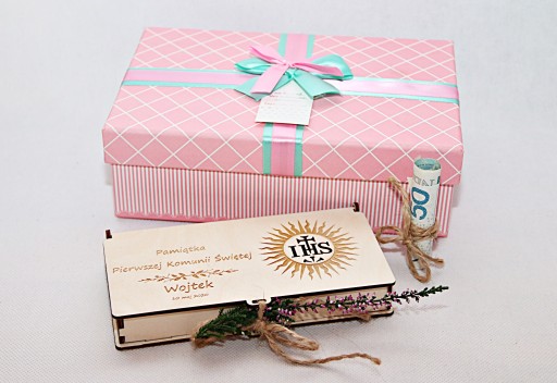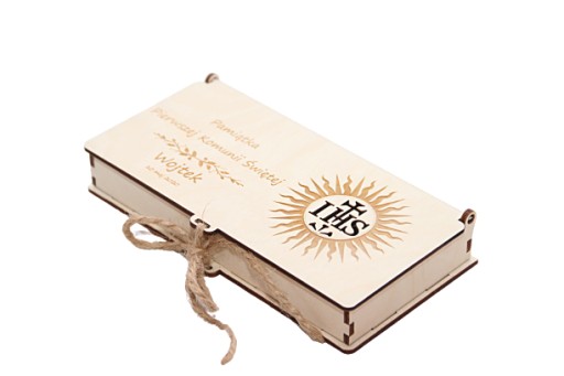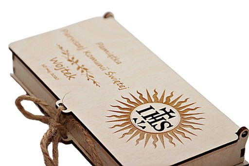 Eleganckie drewniane pudełko z ciekawym wzorem , idealna propozycja dla tych, którzy chcą w sposób nieszablonowy przekazać swoje życzenia.