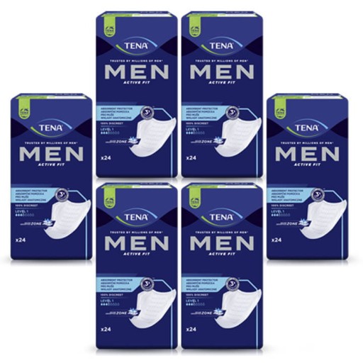 Zostały zaprojektowane w taki sposób, by ochronić cię przed przeciekaniem i nieprzyjemnymi sytuacjami. W każdej pozycji, także w czasie aktywności fizycznej, nie musisz przejmować się nietrzymaniem moczu. Wkładki są idealnie dopasowane do ciała, a elastyczne gumki na brzegach pomagają im utrzymać się na miejscu. TENA Men Active Fit Level 1 mają poziom chłonności na najlepiej chronić cię przed przeciekaniem. Idealnie dopasowane do ciała, mają elastyczne gumki na brzegach, więc poziom pewności jest jeszcze większy. TENA Men Active Fit Level 1 mają poziom chłonności 3/8, możesz im w pełni zaufać.