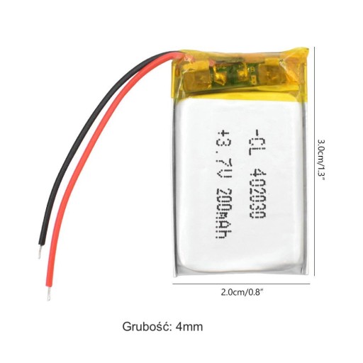 - Pojemność: 200mAh