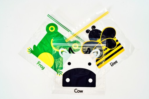Strunowe woreczki zostały ozdobione nadrukami ze zwierzętami i anglojęzycznymi podpisami, co sprawia, że są nie tylko estetyczne, ale także mają walor edukacyjny, łącząc "przyjemne z pożytecznym".
