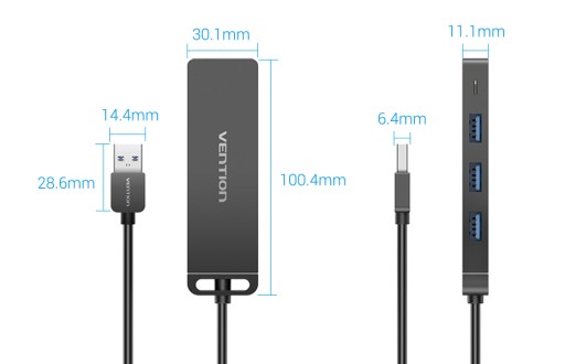 - Wymiary HUBa: 100,4mm x 30,1mm x 11,1mm