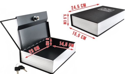 Kasetka Metalowa Sejf Ukryty w Książce na Kluczyk