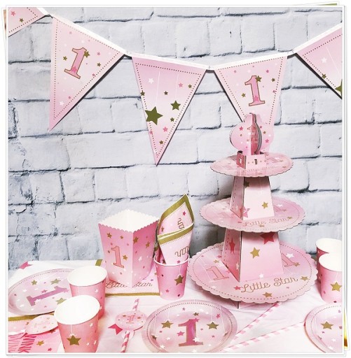 Stojak papierowy na babeczki, muffiny czy inne ciasta w kolorze różowym - 3 piętrowy
