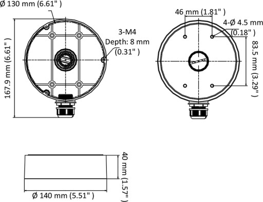 - Aluminiowa puszka montażowa dedykowana do kamer kopułkowych.