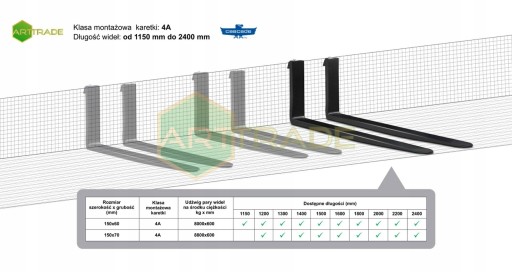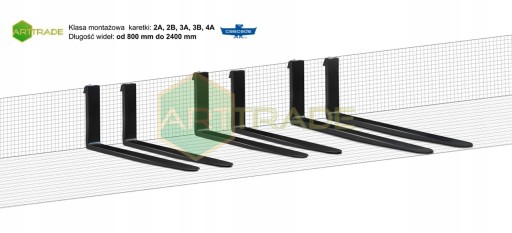 - widły o różnych parametrach udźwigu, klasy karetki,