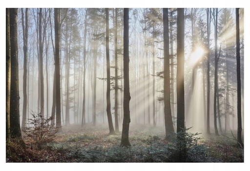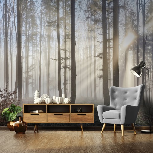 FOTOTAPETA LAS WE MGLE DRZEWA MGLISTY LAS NATURA TAPETA ŚCIENNA 368x254