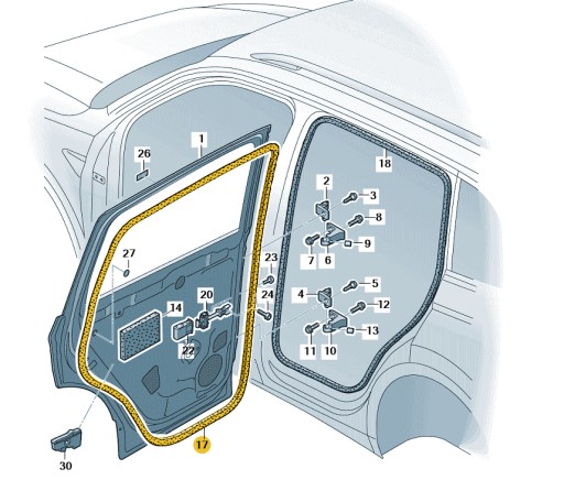 ПРОКЛАДКА ЗАДНЕЙ ПРАВОЙ ДВЕРИ VW TIGUAN ОРИГИНАЛ. ОЭ