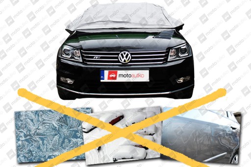 Pokrowiec zapakowany jest walizkę wielokrotnego użytku. Pokrowiec zakładać na zaparkowany pojazd.