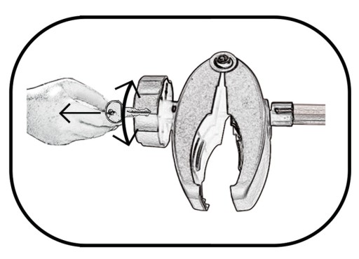 - Jednym kliknięciem demontujesz uchwyt, zamontujesz rower i założysz sztywne ramię, a następnie całość zabezpieczysz przekręcając kluczyk.