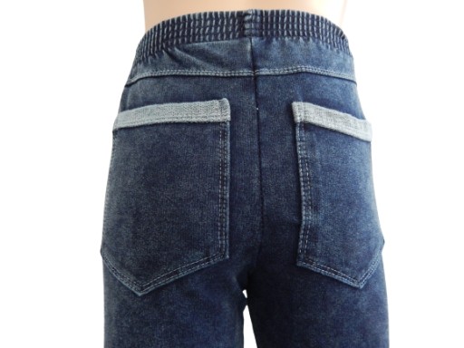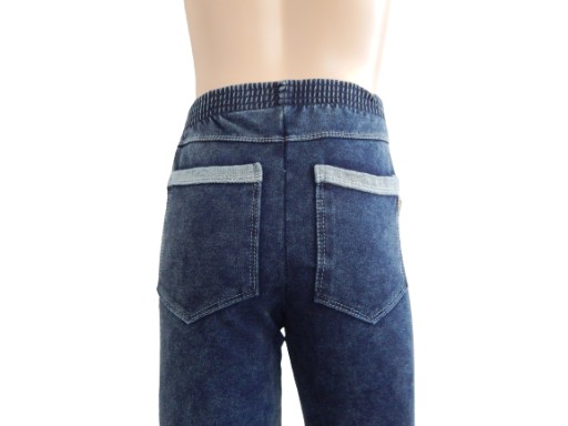 - Bardzo wygodne w noszeniu i miłe w dotyku.Spodnie wykonane z wysokogatunkowej elastycznej dzianiny bawełnianej imitującej jeans z domieszką elastanu.