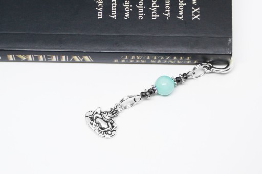 Elegancka zakładka do książki z zawieszką w kształcie żaby z dodatkiem jadeitu i hematytu.