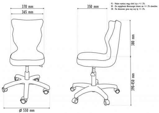 Charakteryzuje się ergonomicznym kształtem siedziska i oparcia, dostosowanym do wzrostu użytkownika.