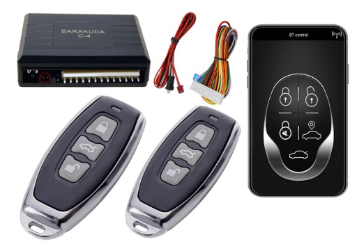 Uniwersalny, sterownik centralnego zamka BARAKUDA C-4 SMARTFON BLUETOOTH to urządzenie najwyższej jakości służące do sterowania centralnym zamkiem, za pomocą telefonu lub pilota. (na smartfonie instalujemy darmową aplikację BT CONTROL dostarczoną z urządzeniem i parujemy go z centralką zamka). Od tego momentu smartfon służy jako pilot sterujący.