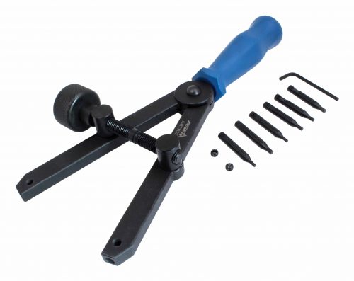 Uniwersalne szczypce do pierścieni zabezpieczających i blokujących o dużej wytrzymałości i 3 parami końcówek roboczych.Gwintowany trzpień regulujący przytrzymuje bez wysiłku sprężynujące elementy zapewniając komfort i bezpieczna pracę.