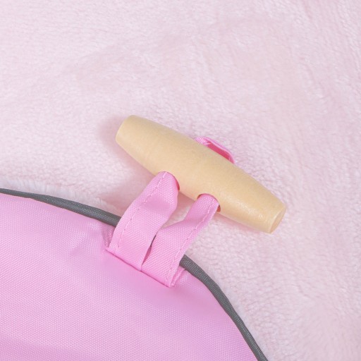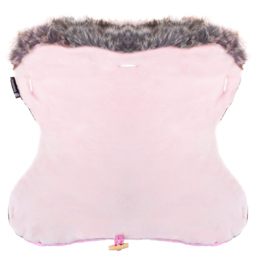 Środek mufki jest wyściełany miłym w dotyku materiałem dla pełnej wygody dłoni rodzica podczas spacerów na świeżym powietrzu. Futerko znajdujące się wokół nie tylko efektownie wygląda, ale także chroni przed zimnem. Zewnętrzny materiał nie wsiąka wody, a wypełnienie materiału utrzymuje ciepło wewnątrz.