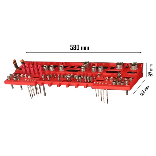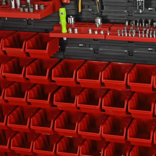 - W zestawie 88 sztuk kuwet, zestaw uchwytów do narzędzi (w sumie 40 sztuk), 4 półki oraz 6 tablic ściennych 576 mm x 390 mm (po złączeniu 115 cm x 117 cm)Kuweta