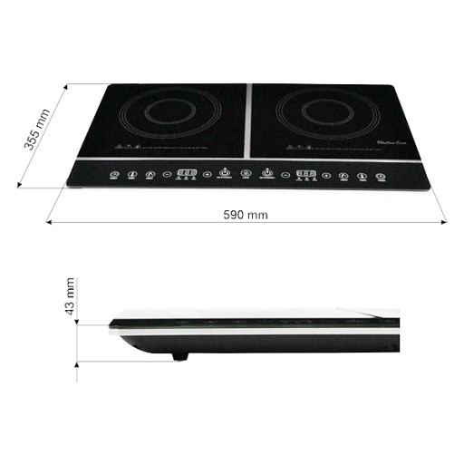 – Powierzchnia szklanej płyty: 590 x 355 mm