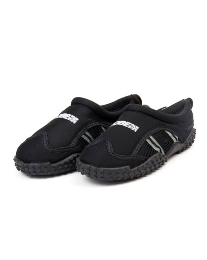 Chroń stopy dzieci za pomocą 2-milimetrowego buta z neoprenu z gumową podeszwą, która zapewnia dodatkową przyczepność, a wodoszczelna struktura z klejonymi szwami jest wyjątkowo miękka dla skóry.