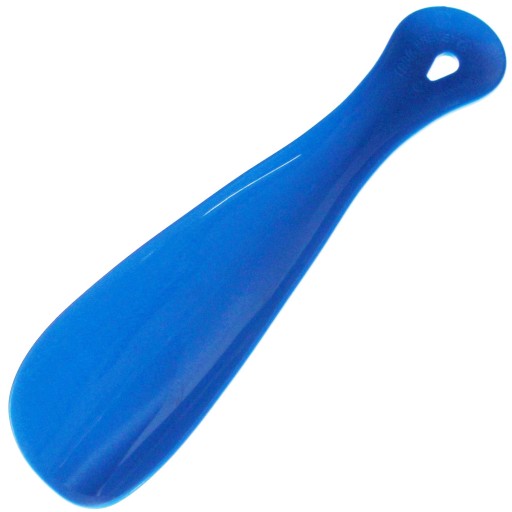 Wysokiej jakości łyżka do zakładania butów. Wykonana z niebieskiego plastiku. Jest solidna, mocna oraz sztywna. Nie niszczy ani nie rozciąga butów. Posiada praktyczny otwór do zawieszenia na gwoździu lub uchwycie, nie zajmuje dużo miejsca.