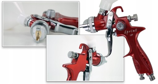Pistolet służy do nakładania różnych materiałów natryskowych w zależności od zastosowanego rozmiaru dyszy. Pistolety Sprint cechuje bardzo wygodna i lekka konstrukcja pistoletu - korpus wykonany jest z wyjątkowo lekkiego materiału. Doskonale leży w dłoni, dobrze rozprowadza się nim materiał. Precyzyjnie spasowanie otworu dyszy i iglicy, uniemożliwia jakiekolwiek przecieki podczas pracy.