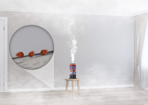 Opakowanie z produktem należy umieścić w centralnej części pomieszczenia na dowolnej wysokości. Produkt uruchomić poprzez silne naciśnięcie aplikatora do momentu jego zablokowania, trzymając pojemnik w wyprostowanej ręce, jak najdalej od twarzy, aby uniknąć narażenia na pionowy strumień aerozolowy. Pozostawić opróżniający się pojemnik, opuścić i zamknąć pomieszczenie na 1 godzinę.
