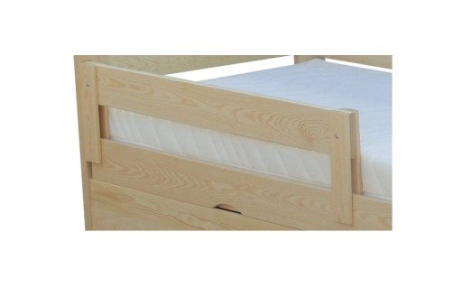 Do łóżka możemy również wyprodukować przednią barierkę zabezpieczającą na dowolny wymiar. Najczęściej wykonujemy ją na ok. 2/3 długości spania (barierka ma postać dwóch pionowych i jednej poziomej deski). Jest ona nakładana na noc i ściągana na dzień (bez potrzeby wiercenia otworów w desce nośnej).