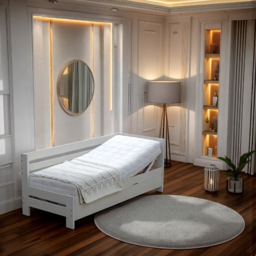 9. Łóżko jest wykonane z LITEGO DREWNA SOSNOWEGO, dzięki czemu gwarantuje dużą stabilność i wytrzymałość przez długie lata.