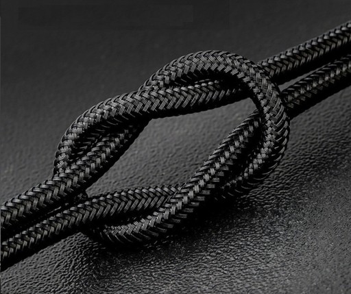 Przewód wykonany jest z nylonu, dzięki czemu nie musimy się przejmować o uszkodzenia wynikające z zagięcia przewodu oraz plątaninę kabla.