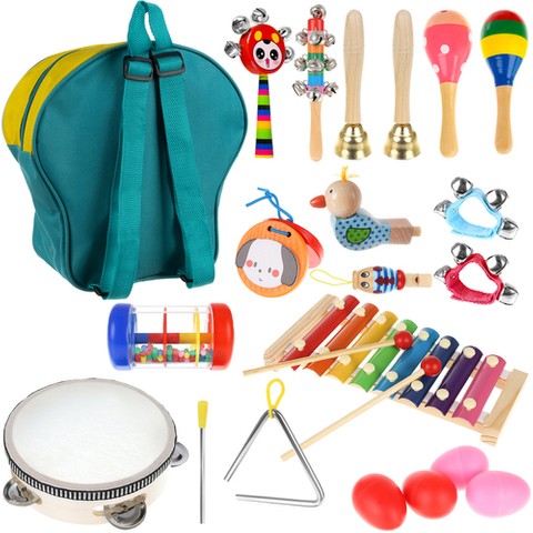 ДЕРЕВЯННЫЕ МУЗЫКАЛЬНЫЕ ИНСТРУМЕНТЫ В РЮКЗАКЕ 24 ШТ.