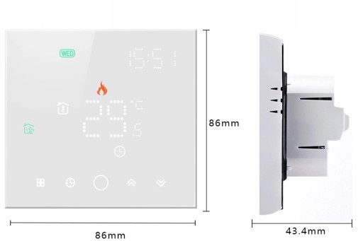 - 1x Termostat z ekranem z dotykowymi przyciskami