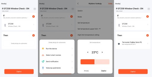 Przykładowo, gdy okno zostanie otwarte ➡️ wyłącz termostat i przestań ogrzewać przewietrzane pomieszczenie.
