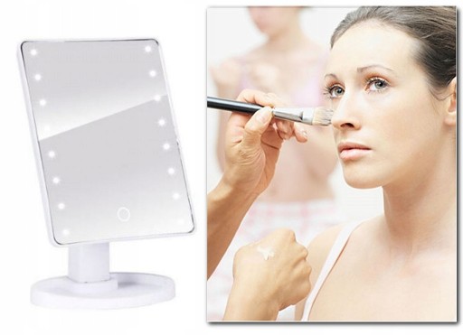 Doskonałe lusterko kosmetyczne z powiększeniem. Wyposażone w aż 16 diod doświetlających LED po zewnętrznej stronie. Diody LED są uruchamiane dotykowo - wystarczy kliknąć w dowolnym miejscu lusterka aby je aktywować i rozświetlić sobie przestrzeń roboczą np. w trakcie wykonywania makijażu.