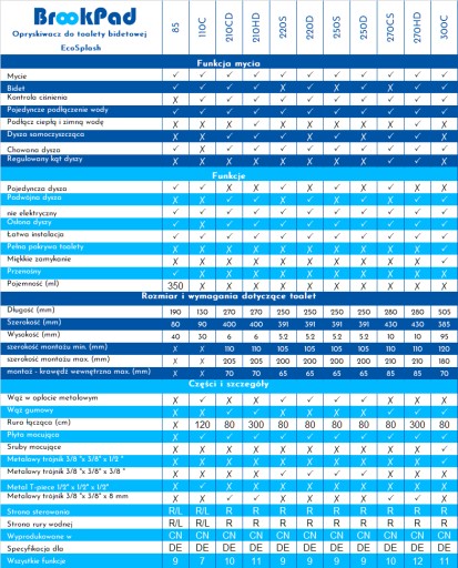 W innych modelach EcoSplash jest to odpowiednio :