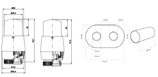 Zawór termostatyczny 50mm TWINS kolor czarny mat orientacja prawy (lewy na życzenie) + złączki do instalacji Pex 16 mm (złączki do instalacji miedzianej na życzenie) + rozeta owalna (prostokątna na życzenie) i tuleje w kolorze czarny mat.