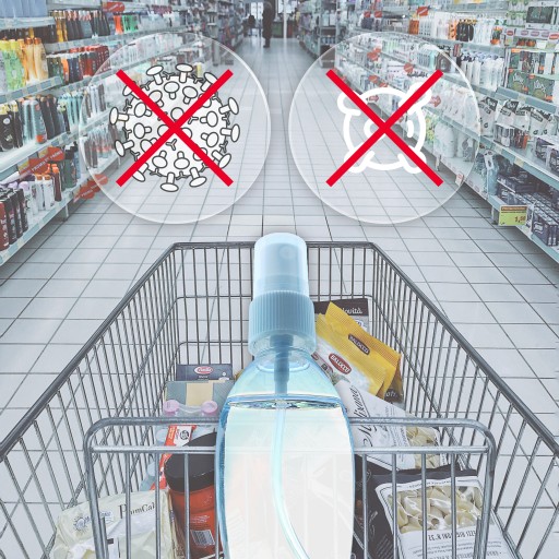 Rozpyl preparat dezynfekujący na całej powierzchni uchwytu koszyka. Po zrobieniu zakupów zdezynfekuj dłonie oraz same produkty po powrocie do domu.