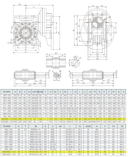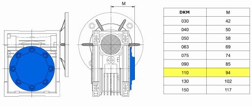 - przekładnia DKM zamienna jest z przekładniami NMRV / WMI / CMI / SMI / VMR