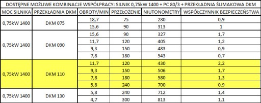 Z silnikiem 0,75kW mogą również współpracować inne przekładnie gdzie dostępne są inne przełożenia. Sprawdź nasze aukcje.