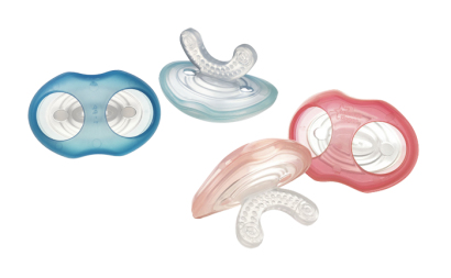 Gryzaki o potrójnym działaniu posiadają fakturowaną powierzchnię masującą dziąsełka, powierzchnie do gryzienia i żucia oraz kanalikido aplikacji żelu przeciwbólowego.